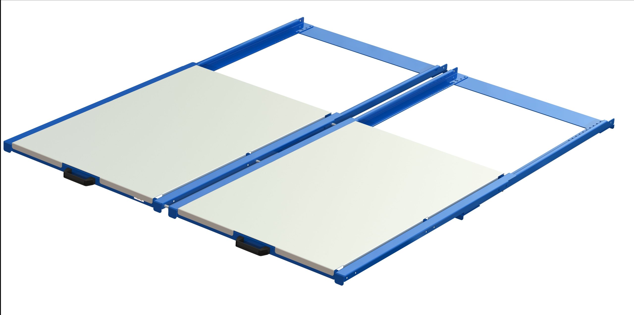 Steel shelf panel to linked pull-out units 600/1200kg 70/100% W=2100 Steel shelf panel to linked pull-out units 600/1200kg 70/100% W=2100