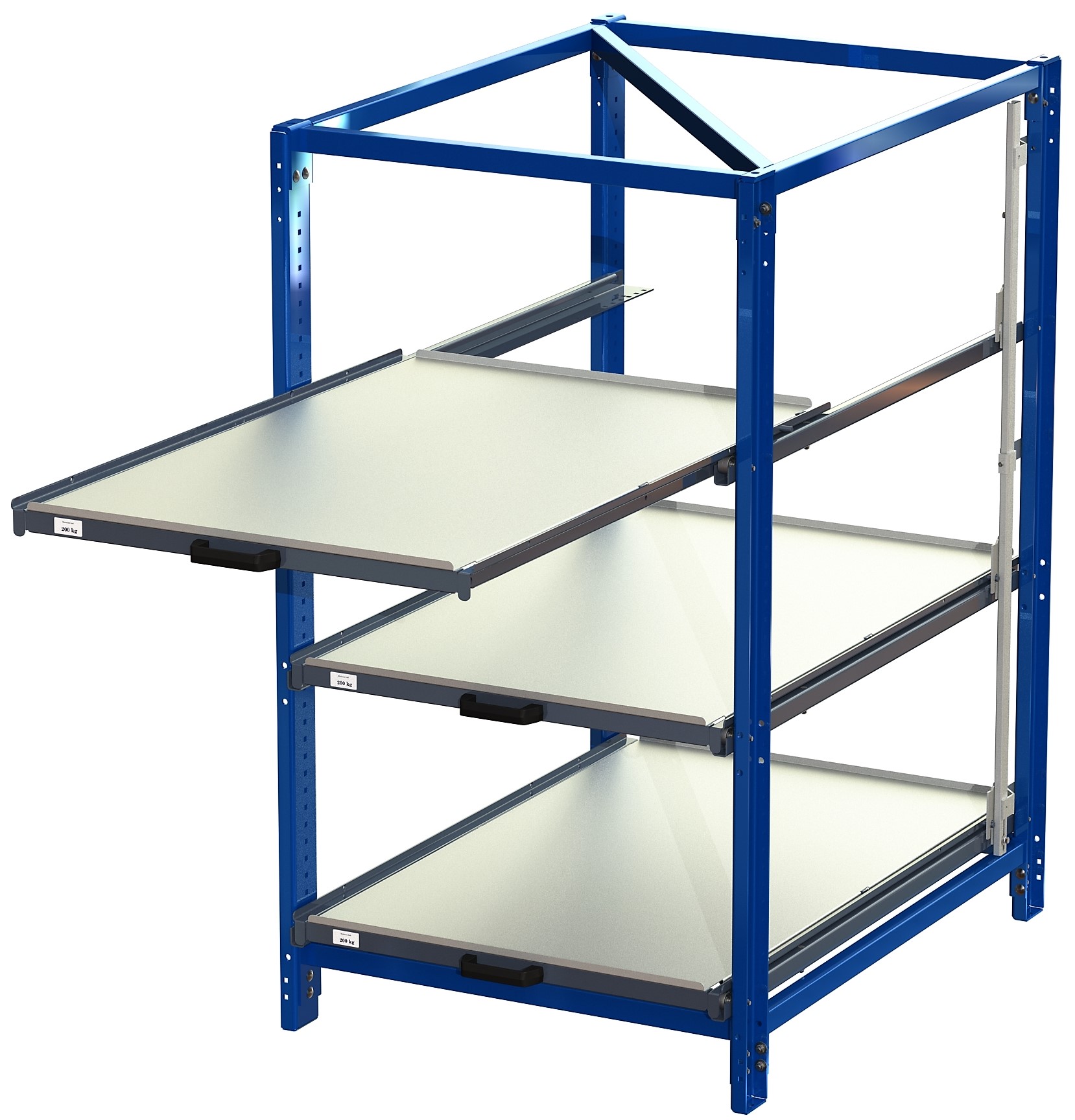 Compact Storage Unit with shelf lock, short-side forward, 70% extension, 200kg load capacity, 3 shelves