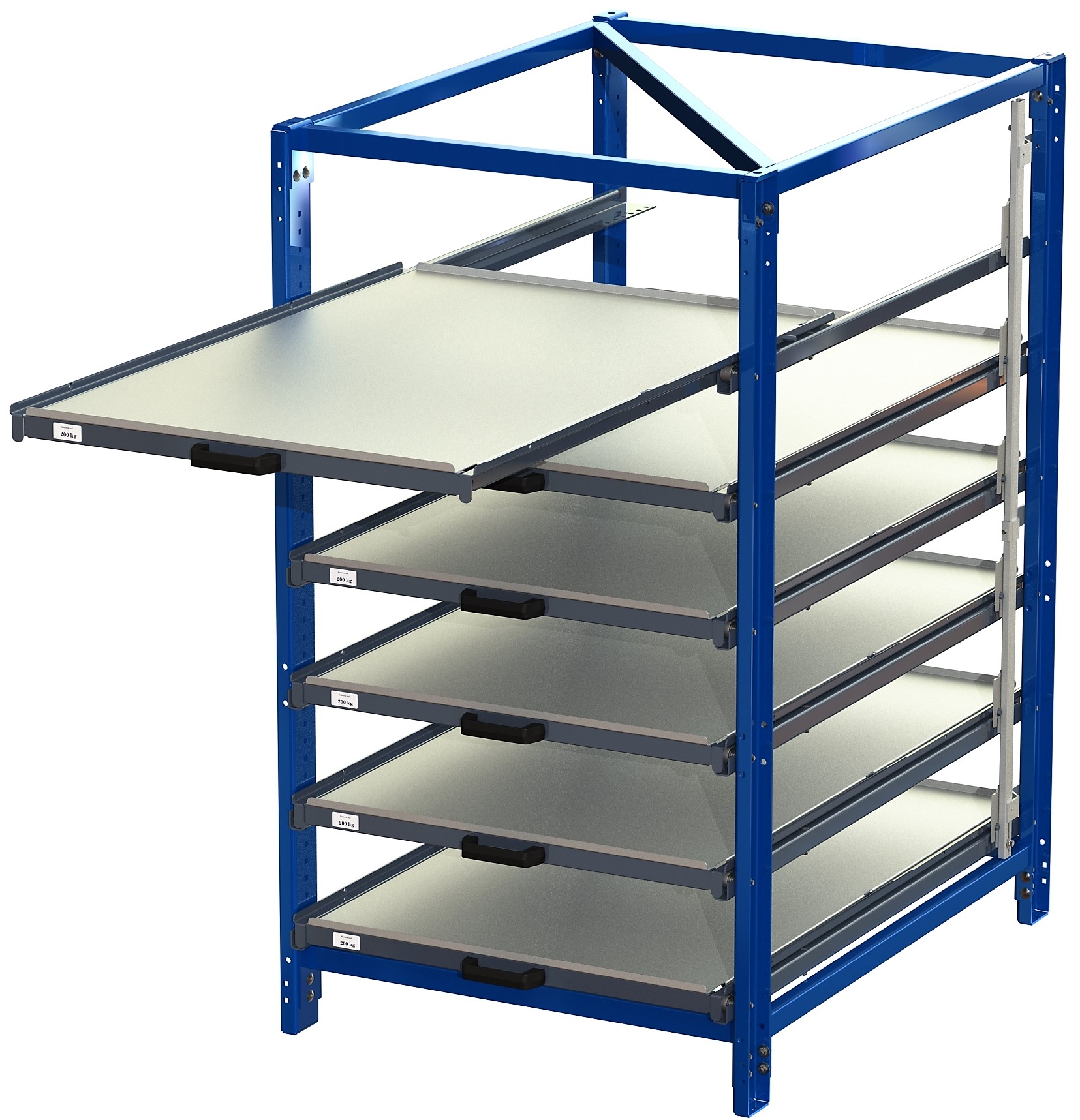 Compact Storage Units (CSUs) are simple, strong and versatile. They pack a huge amount of easy-access storage into a footprint hardly bigger than a EUR-pallet (1206mm x 880mm). A rigid steel frame with slotted uprights allows for customisation. Ideal for either stationary, movable or mobile storage of mostly smaller items which will be handled manually. CSUs benefit from a modular construction and a big range of accessories, so they’re adaptable to meet your particular needs