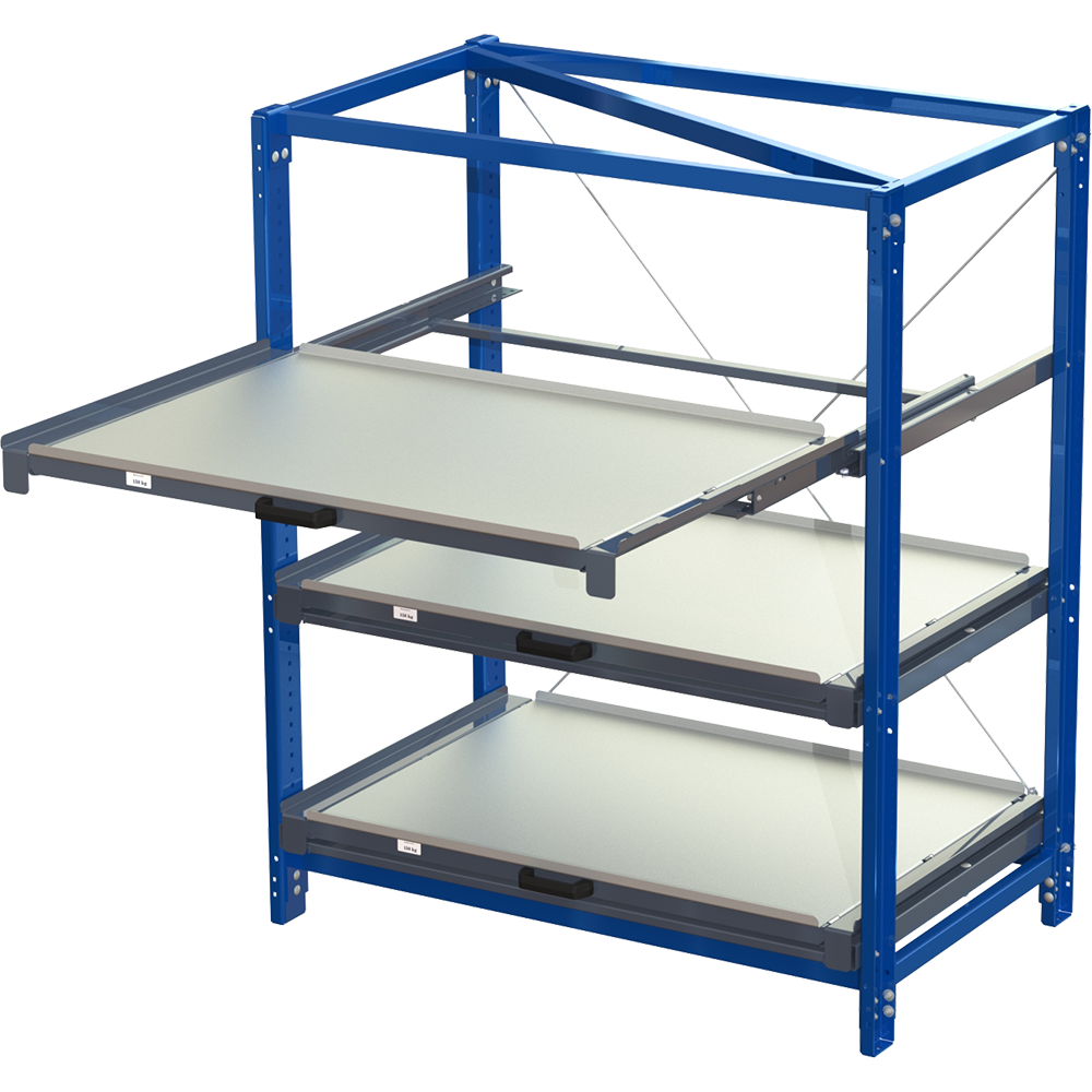 Compact Storage Unit Without shelf lock, long-side forward, 100% extension, 150kg load capacity, 3 shelves
