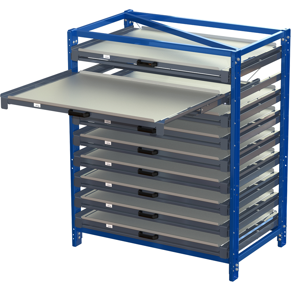 Compact Storage Unit Without shelf lock, long-side forward, 100% extension,150kg load capacity, 9 shelves