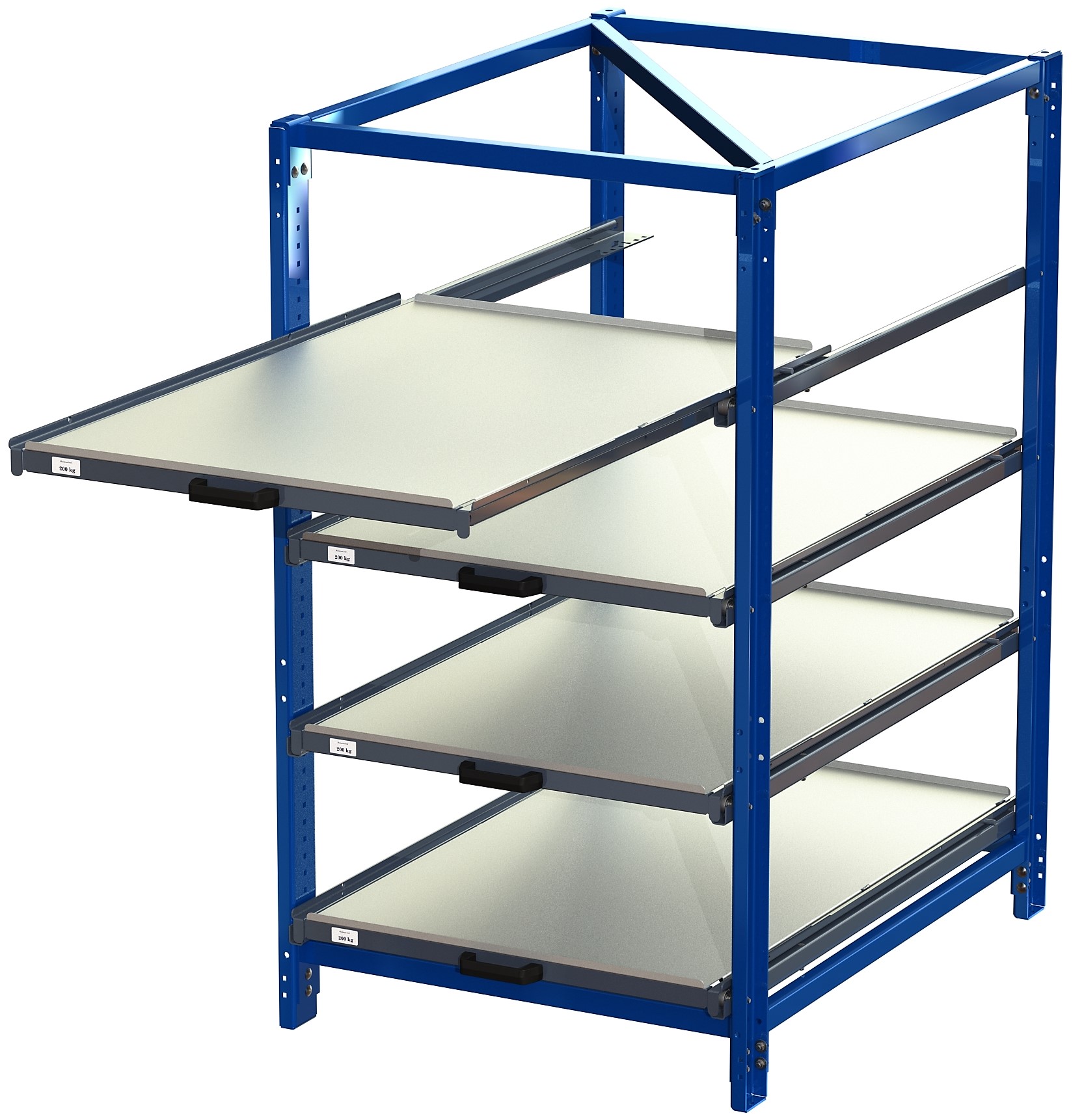 Compact Storage Unit Without shelf lock, short-side forward, 70% extension, 200kg load capacity, 4 shelves