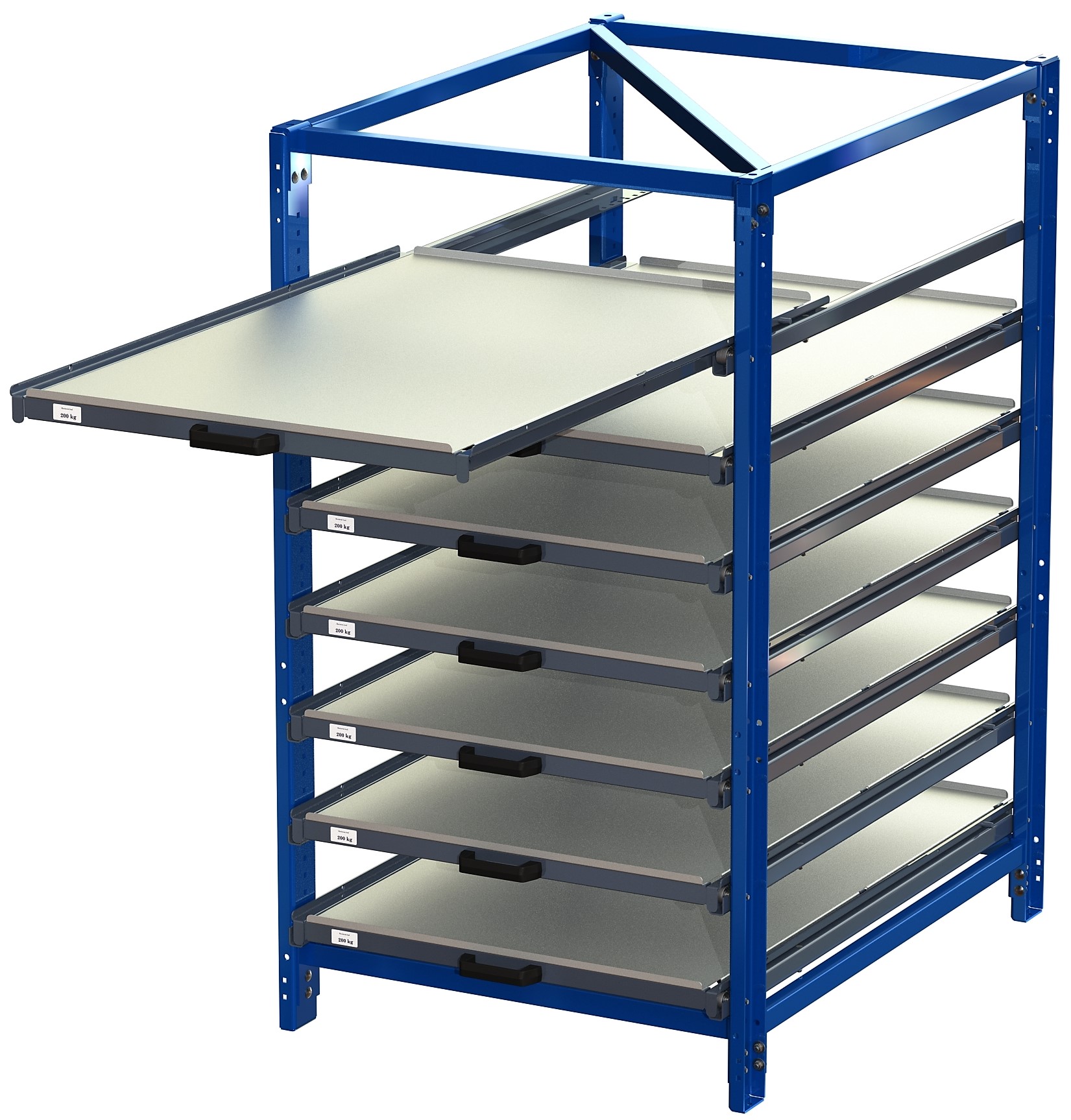 Compact Storage Units (CSUs) are simple, strong and versatile. They pack a huge amount of easy-access storage into a footprint hardly bigger than a EUR-pallet (1206mm x 880mm). A rigid steel frame with slotted uprights allows for customisation. Ideal for either stationary, movable or mobile storage of mostly smaller items which will be handled manually. CSUs benefit from a modular construction and a big range of accessories, so they’re adaptable to meet your particular needs
