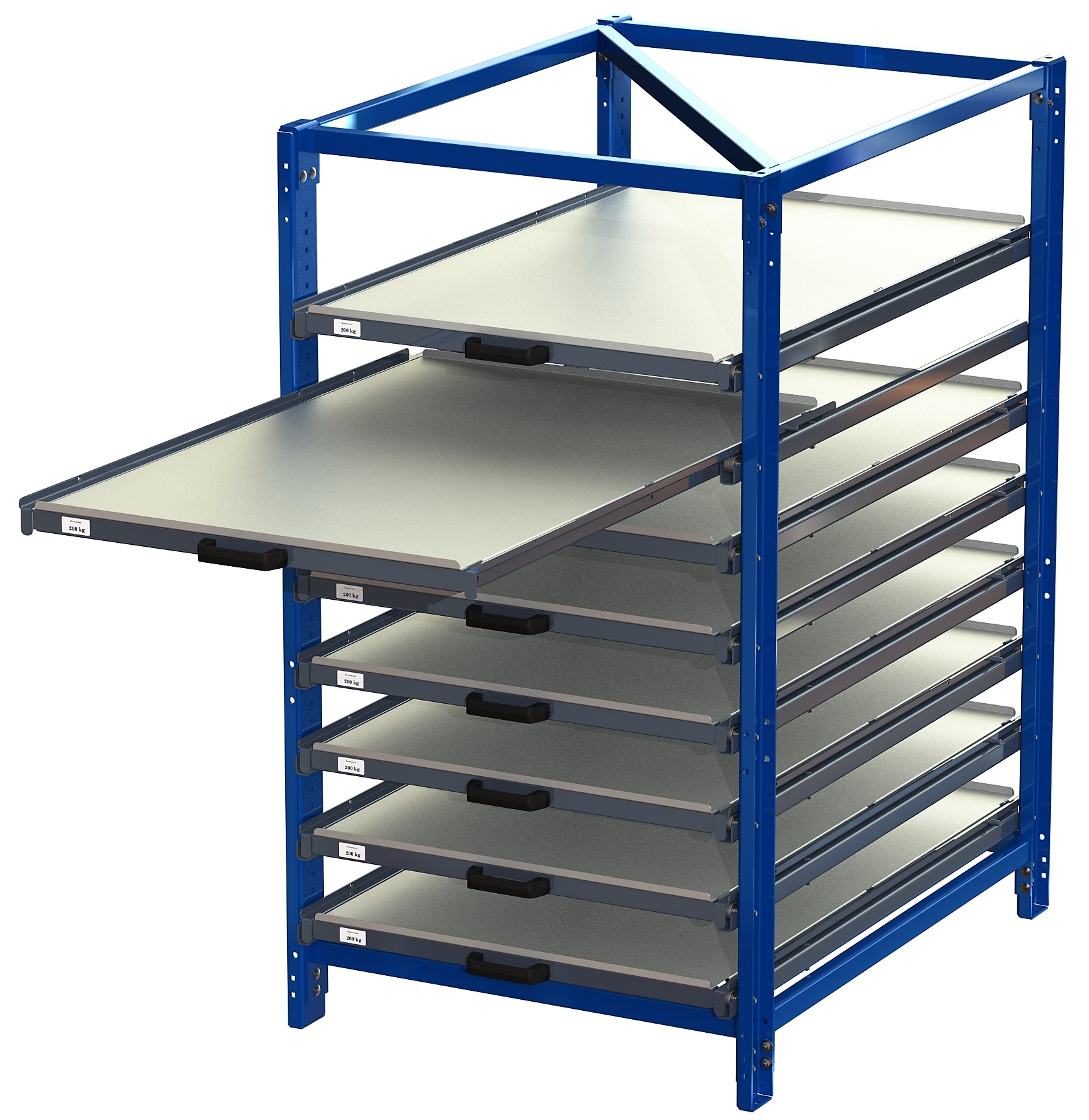 Compact Storage Units (CSUs) are simple, strong and versatile. They pack a huge amount of easy-access storage into a footprint hardly bigger than a EUR-pallet (1206mm x 880mm). A rigid steel frame with slotted uprights allows for customisation. Ideal for either stationary, movable or mobile storage of mostly smaller items which will be handled manually. CSUs benefit from a modular construction and a big range of accessories, so they’re adaptable to meet your particular needs