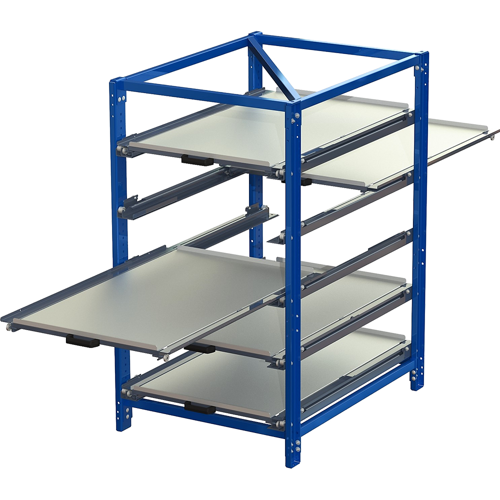 Compact Storage Units (CSUs) are simple, strong and versatile. They pack a huge amount of easy-access storage into a footprint hardly bigger than a EUR-pallet (1206mm x 880mm). A rigid steel frame with slotted uprights allows for customisation. Ideal for either stationary, movable or mobile storage of mostly smaller items which will be handled manually. CSUs benefit from a modular construction and a big range of accessories, so they’re adaptable to meet your particular needs