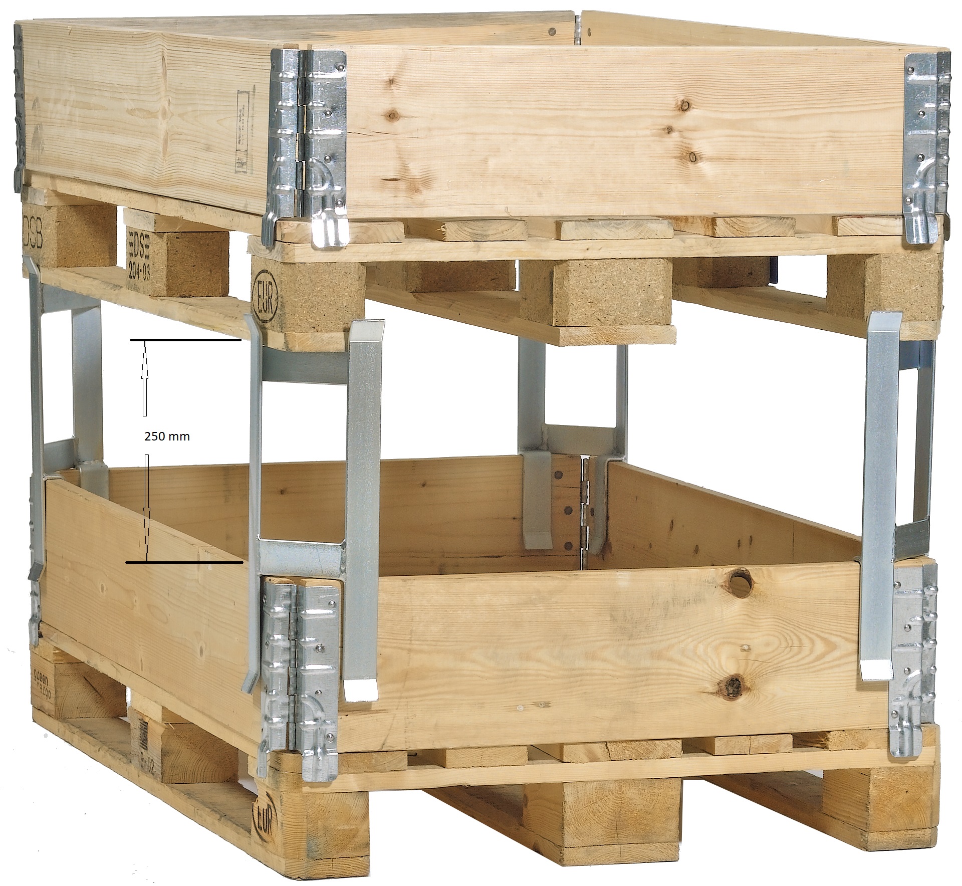 Free space between collar and pallets: 250 mm. Set of 4 pcs