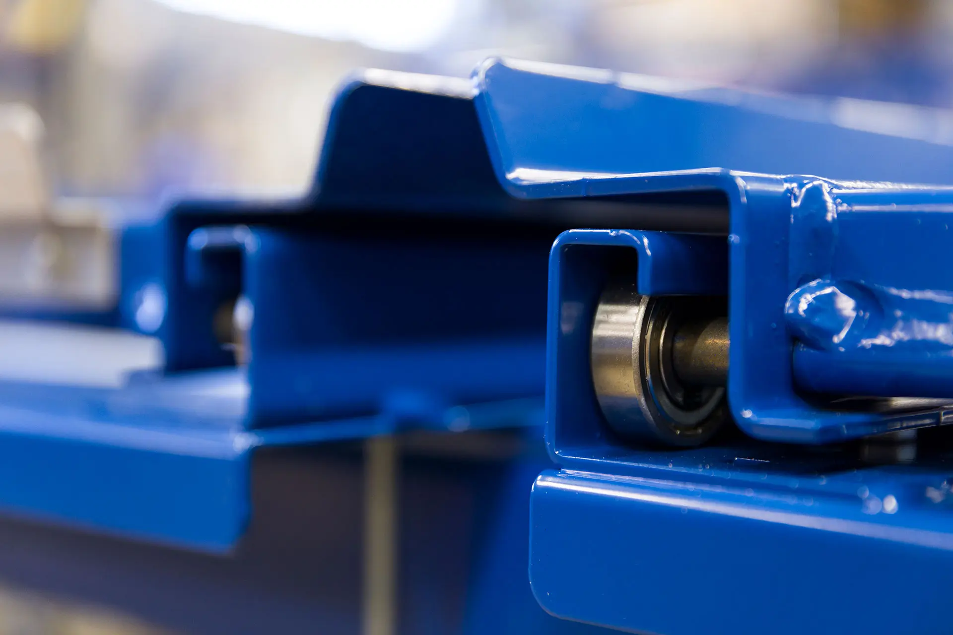 Floor-mounted units fit under pallet racks but can also be used as free-standing units. They are fixed to the floor with bolts through floor rails that act as guide rails. Being able to pull the units out of the pallet rack enables quick, easy and safe access to stored products.